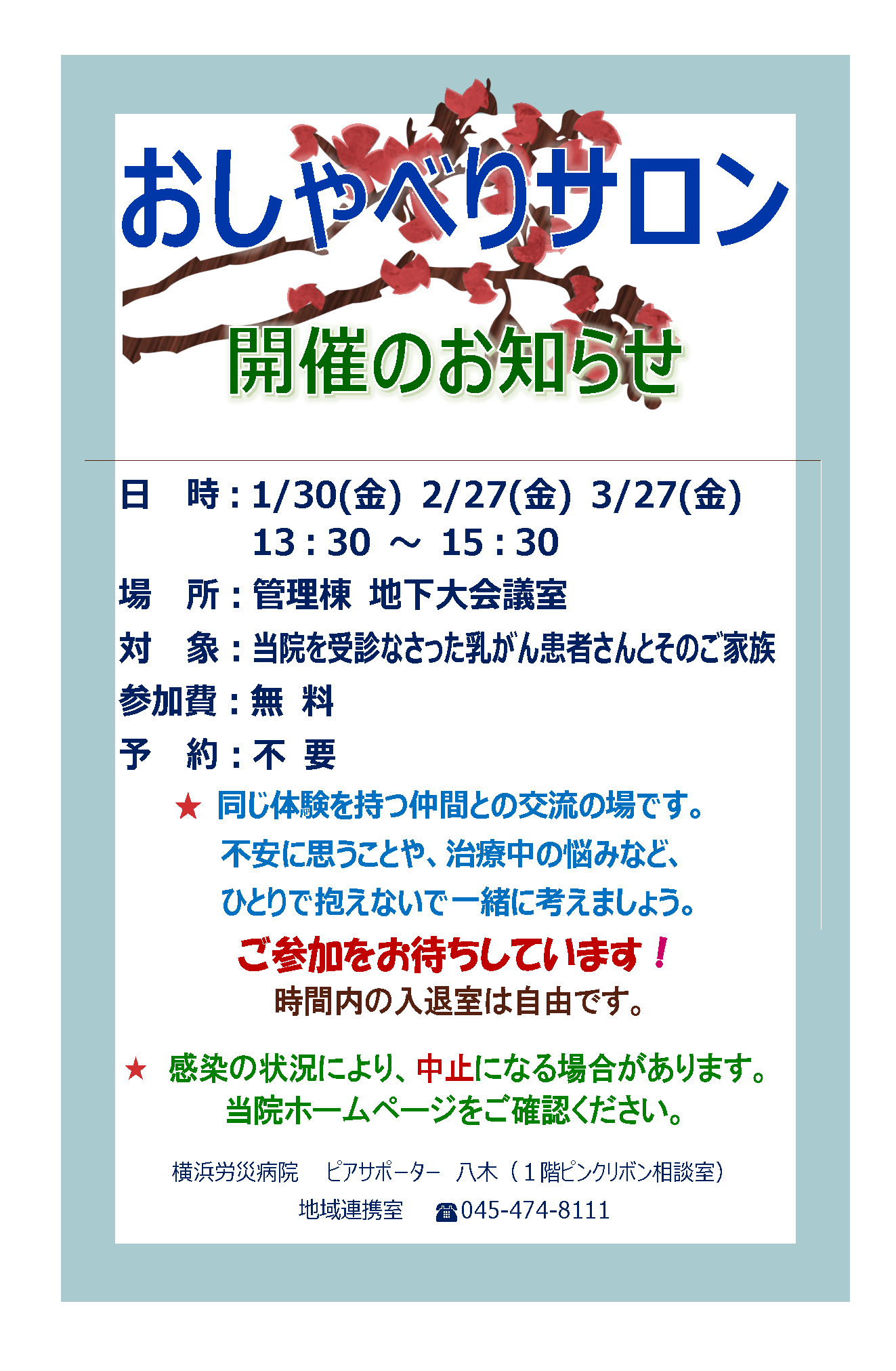 おしゃべりサロン(乳がん患者会)開催のお知らせ
