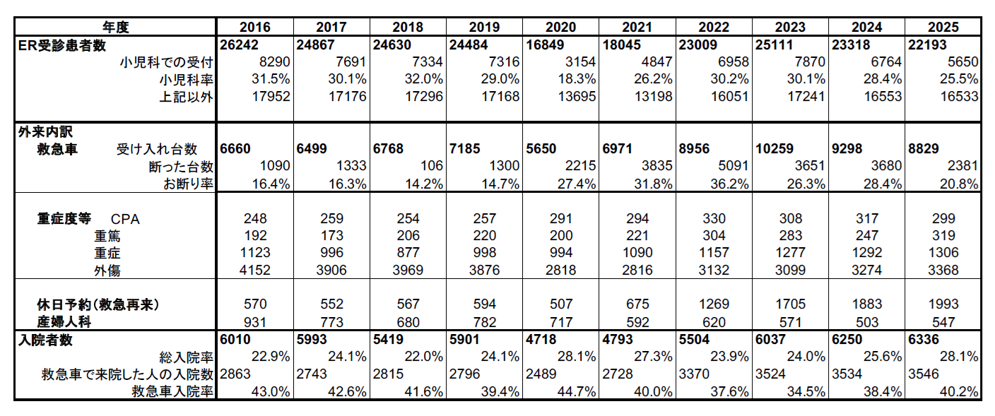 ―年間受診者 22,193人、うち救急車 8,829台(2025年度)の豊富な症例